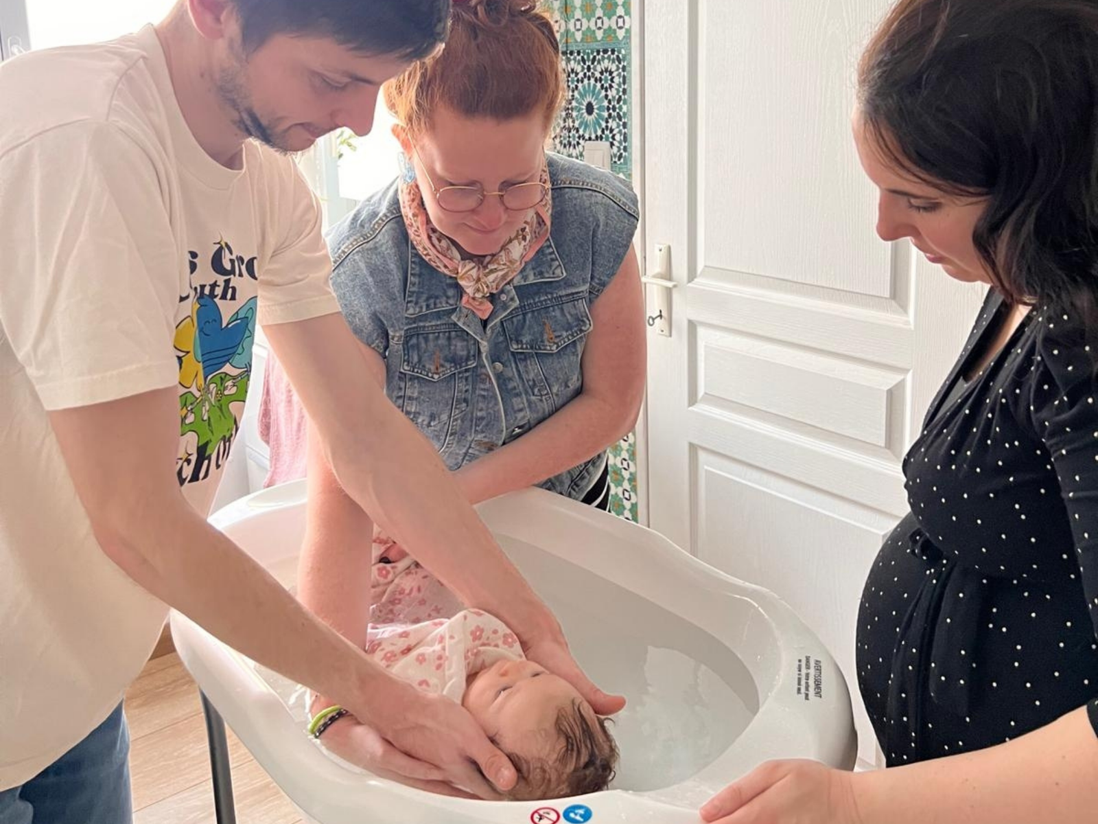 La transmission des gestes : vous apprendrez à emmailloter bébé avant le bain, une technique apaisante que vous pourrez réutiliser chez vous.